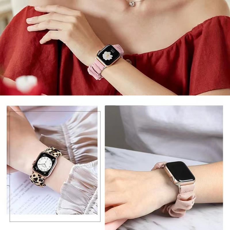 Tissu de luxe personnalisé pour bracelet Apple Watch pour femmes, respirant, élastique, bracelet IWatch S8/S9, bracelet de montre tendance