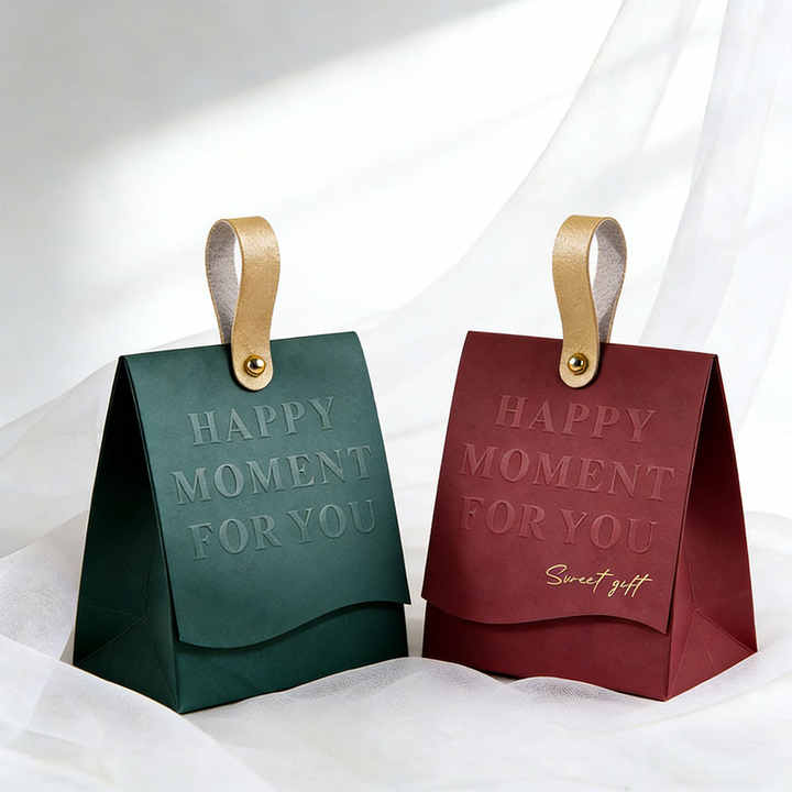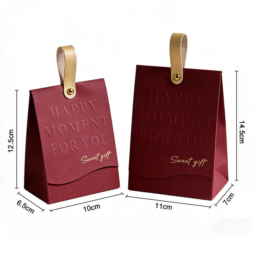 Sacs cadeaux de luxe personnalisés, sacs d'emballage pour bonbons et chocolats de mariage, boîte pour fête de mariage, nouveaux sacs en papier haut de gamme avec poignée en cuir