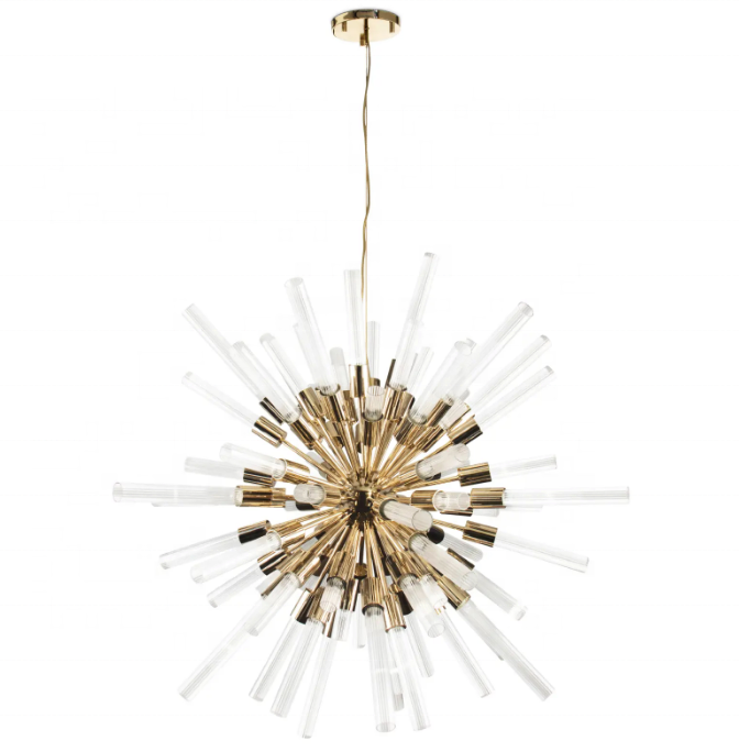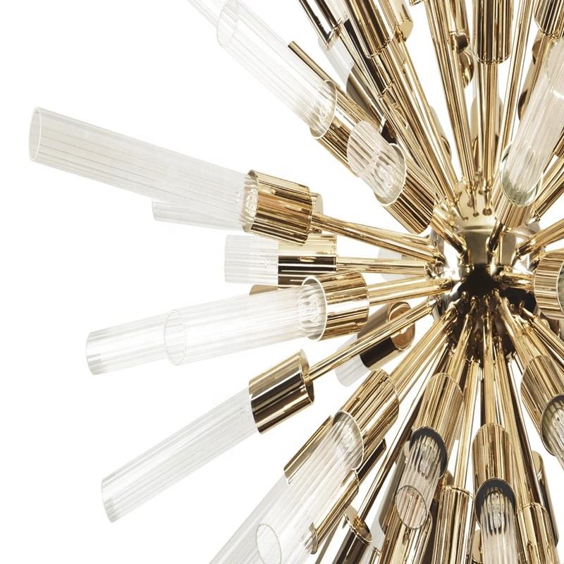 Suspension satellite en tube de verre de luxe personnalisée grand lustre doré éclairage pour villa salon chambre maison