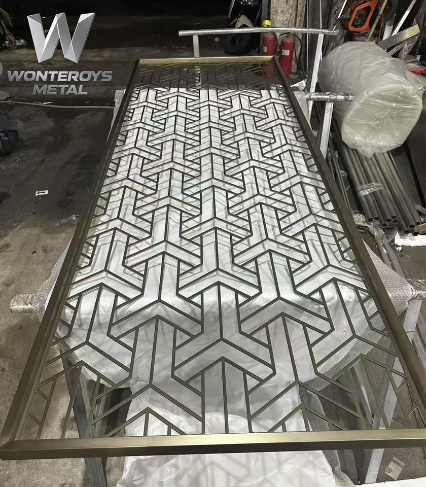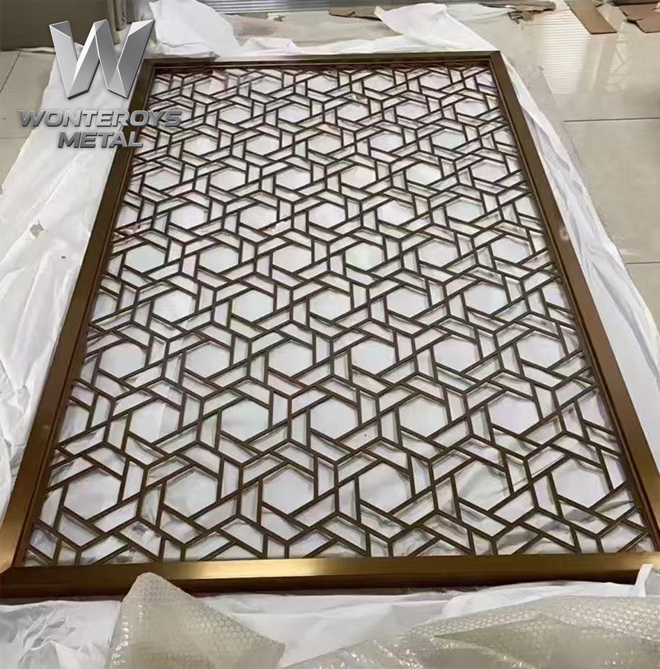 Paravent de séparation de pièce en métal découpé au laser, design moderne et luxueux en or, personnalisé pour les halls de casino, les terminaux, les banquets et les hôtels