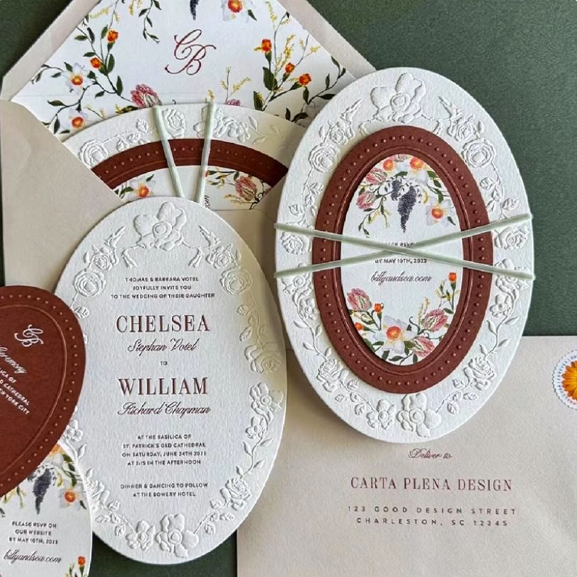 Carte de Mariage de Luxe Personnalisée en Letterpress, Faire-part de Mariage Haut de Gamme avec Texte Gaufré, Carte Postale, Carte Menu