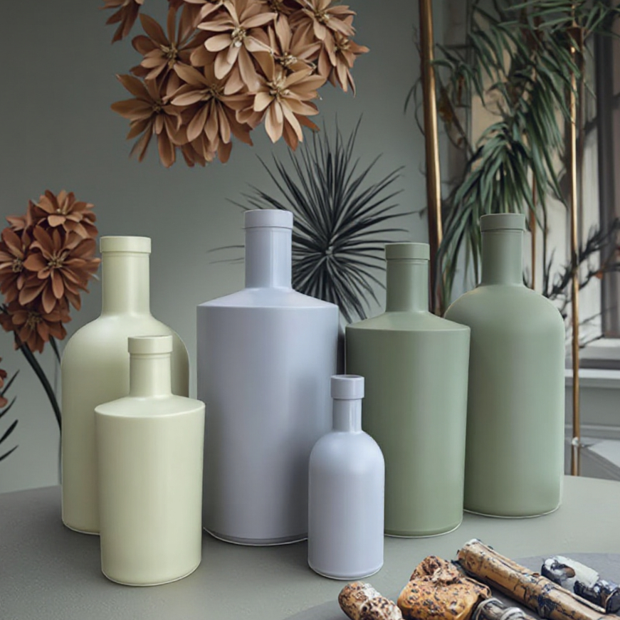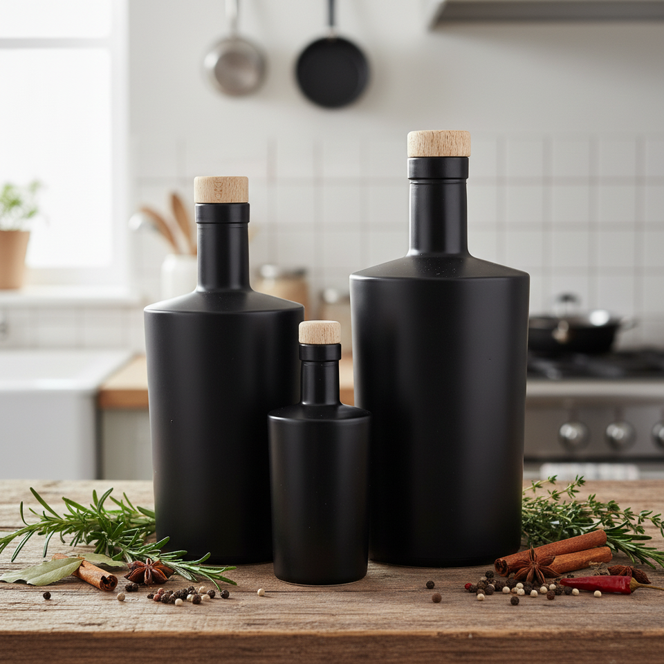 Emballage personnalisé de bouteilles en verre pour spiritueux, rhum, vodka, whisky, gin, noir mat vert de luxe, 100 ml, 375 ml, 500 ml, 750 ml, imprimé