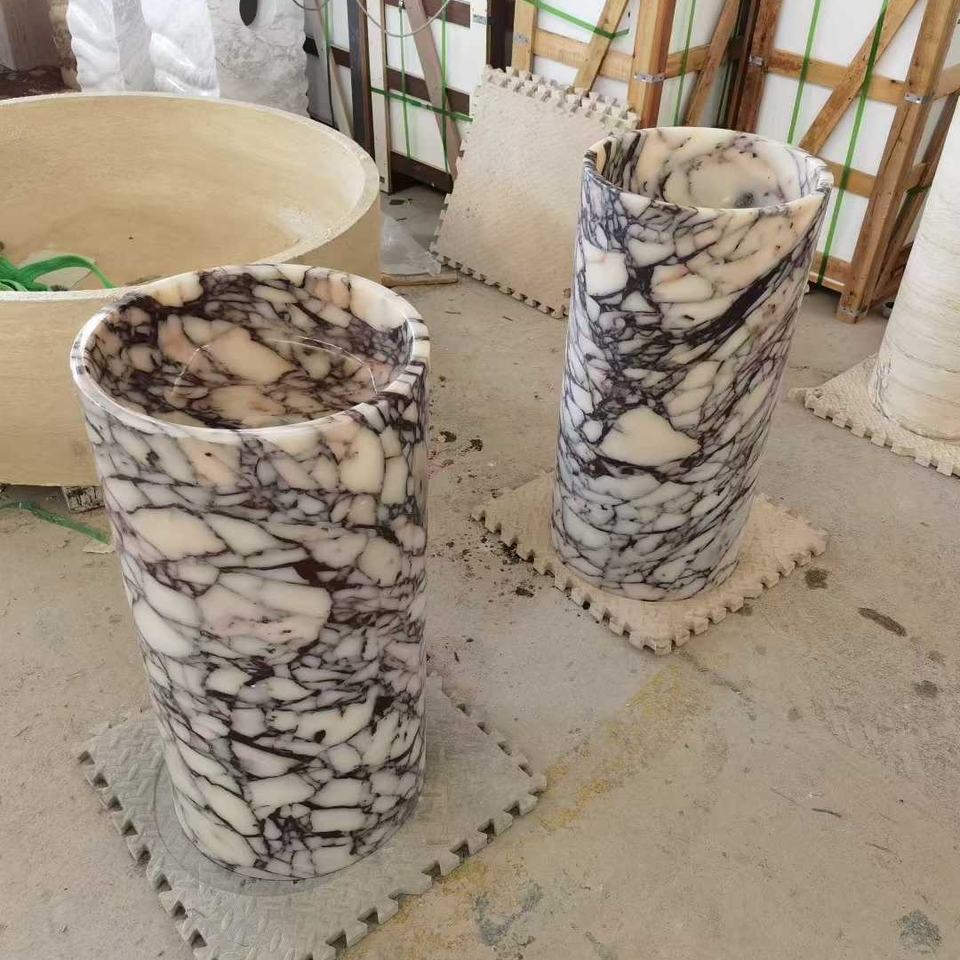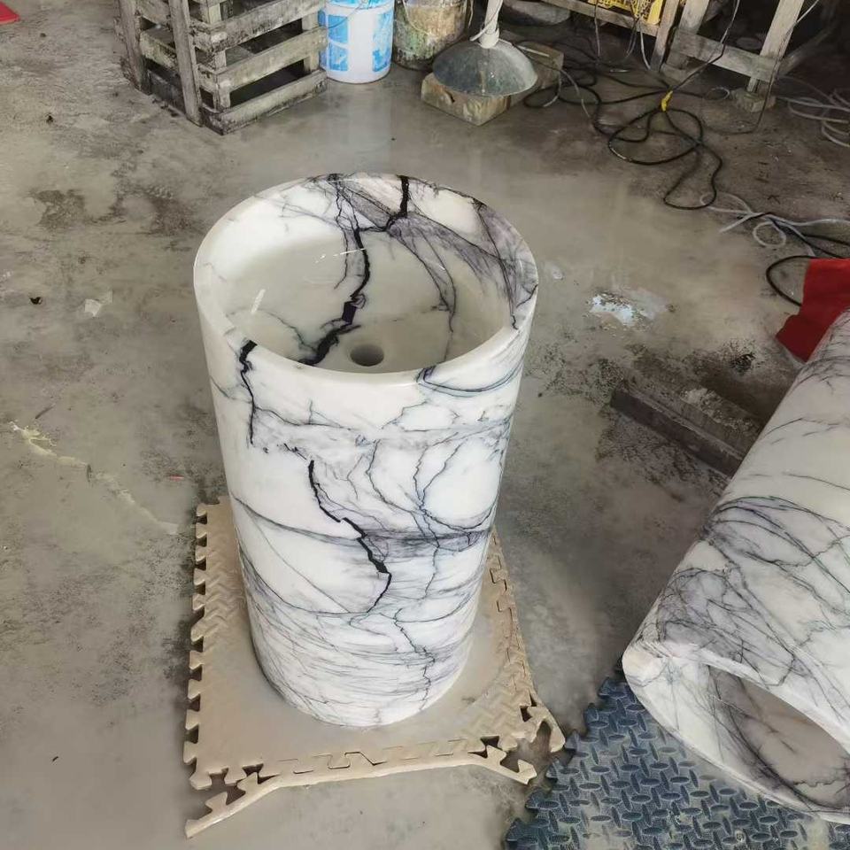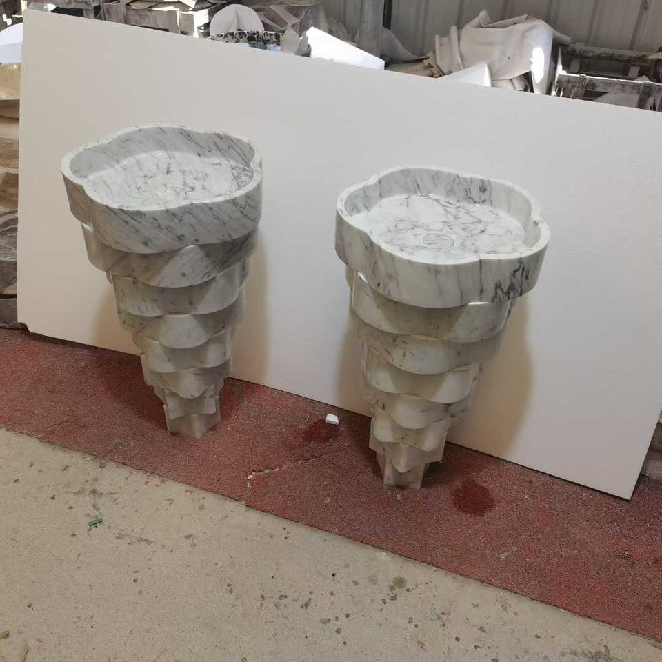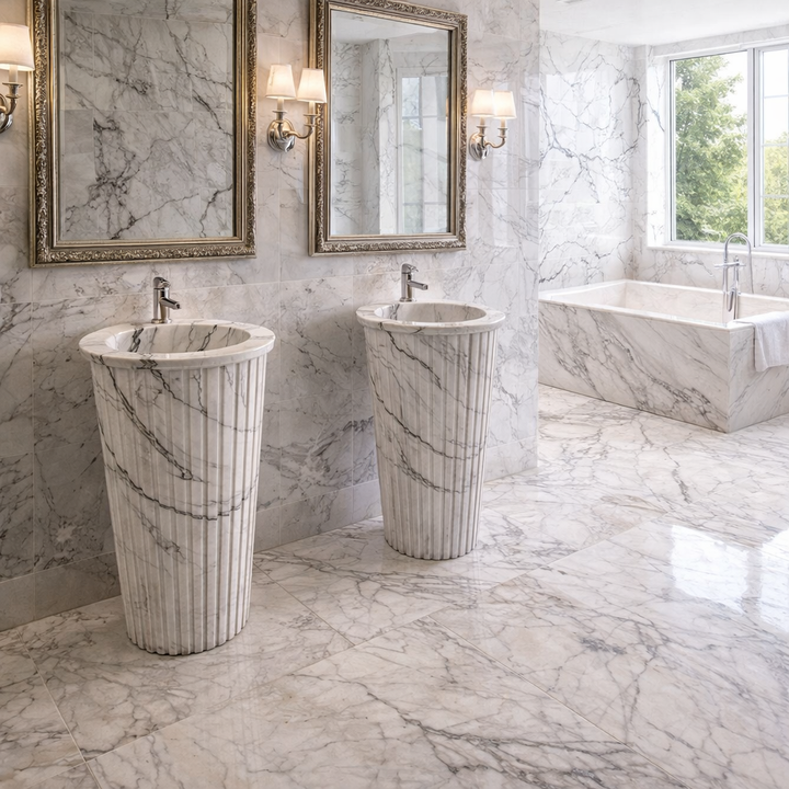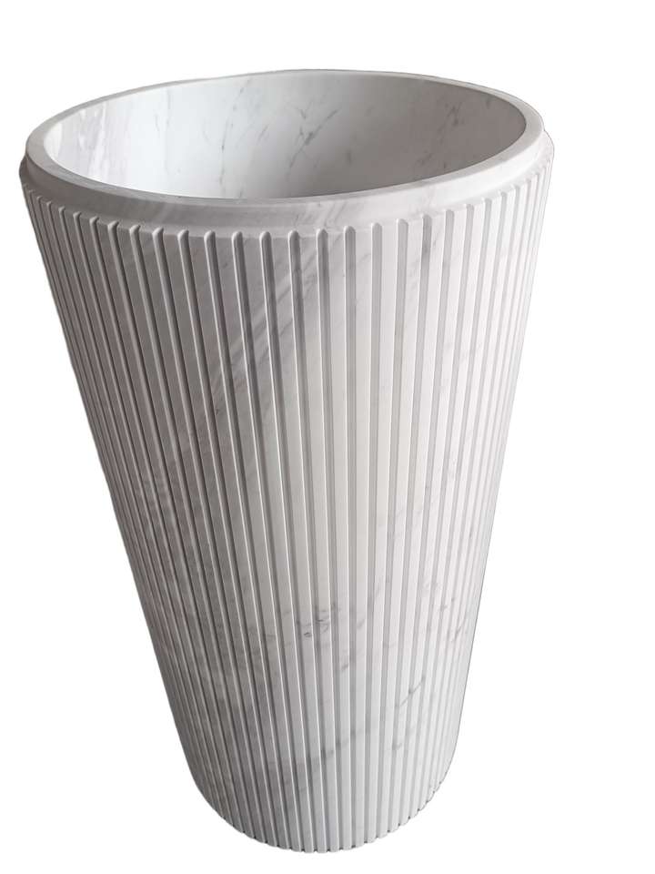 Évier en marbre blanc Milas Lilac de luxe sur mesure | Design côtelé unique pour la salle de bain