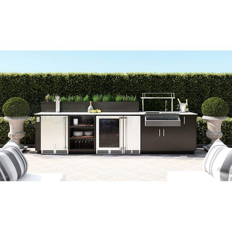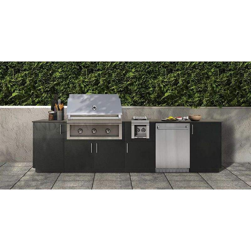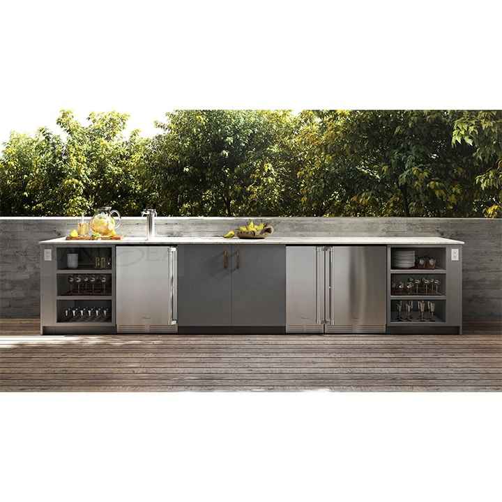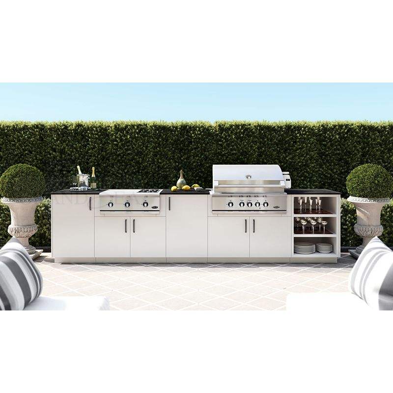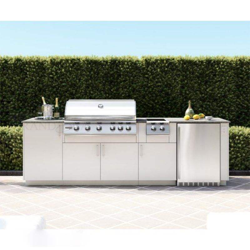 Armoires de cuisine extérieures en acier inoxydable de luxe personnalisées avec cuisinière à gaz et barbecue au gaz