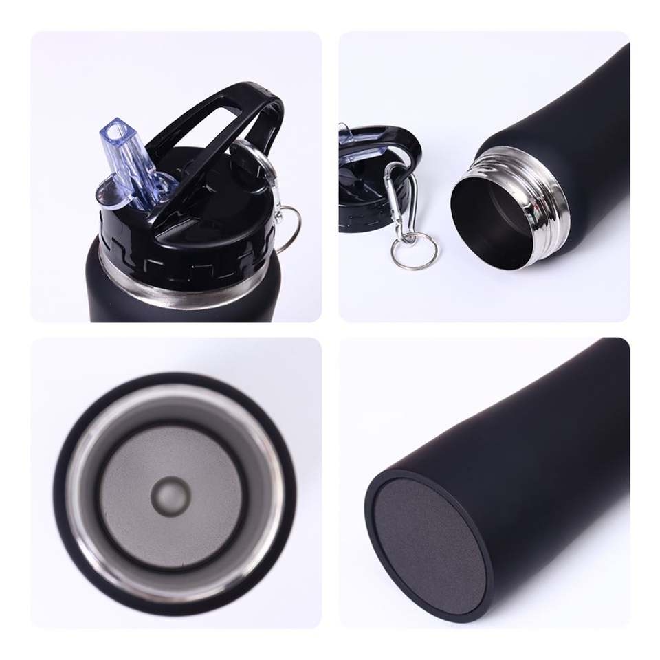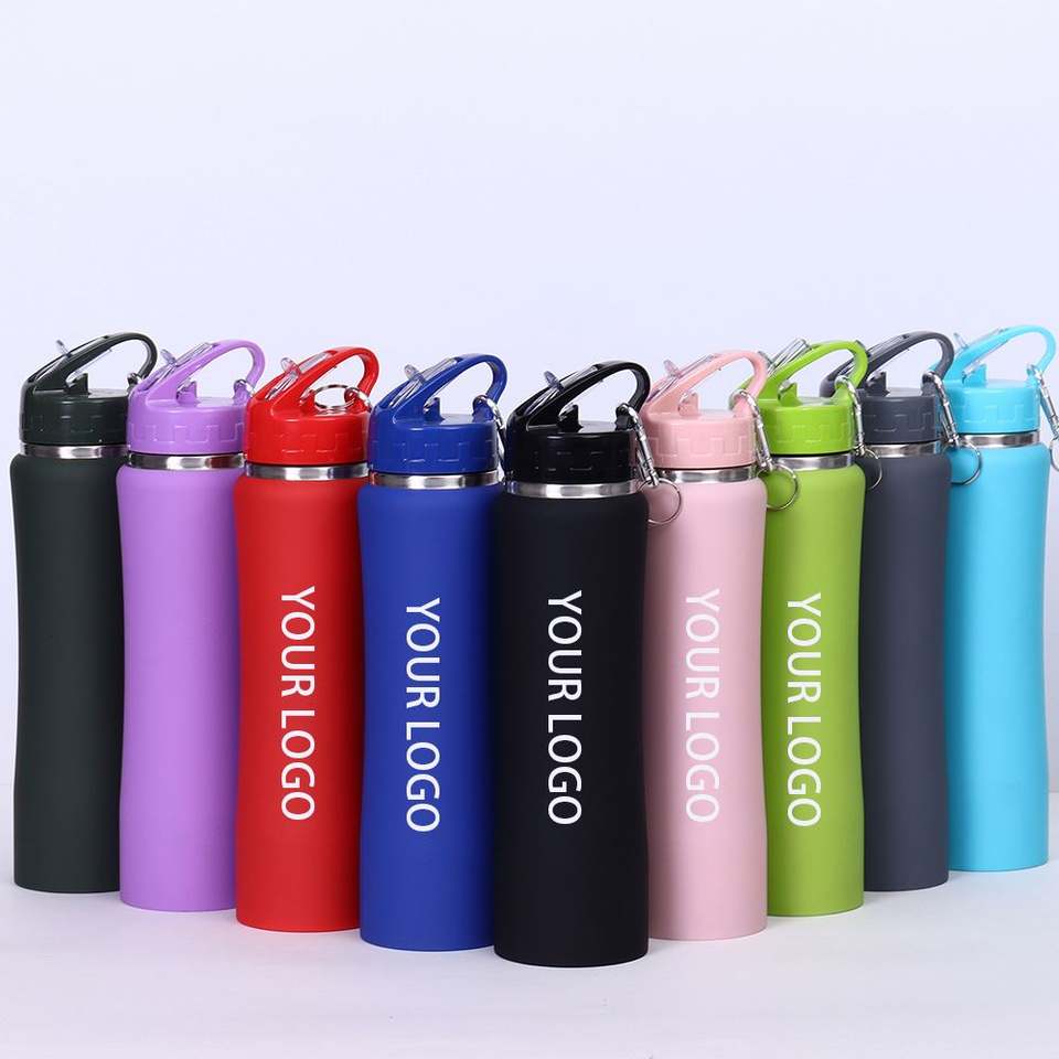 Customized Luxury Portable Gym Sports Flask Vacuum Stainless Steel Insulated Carabiner Water Bottle Straw for Business Gifts