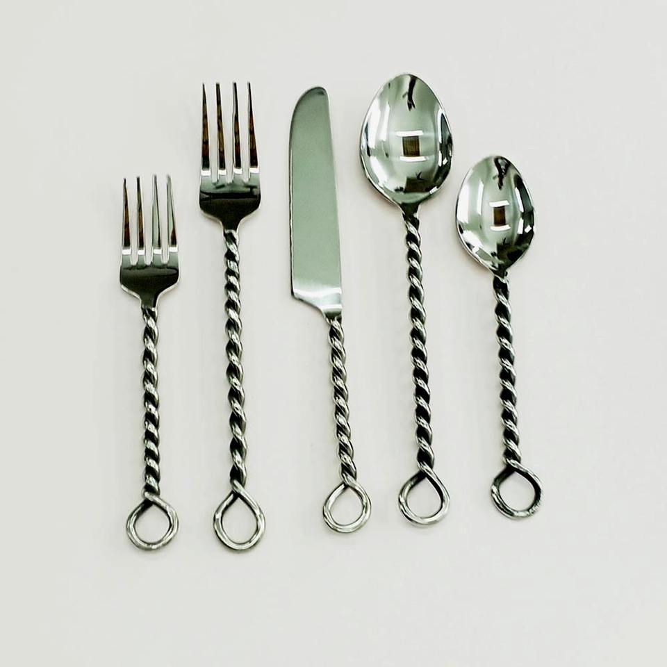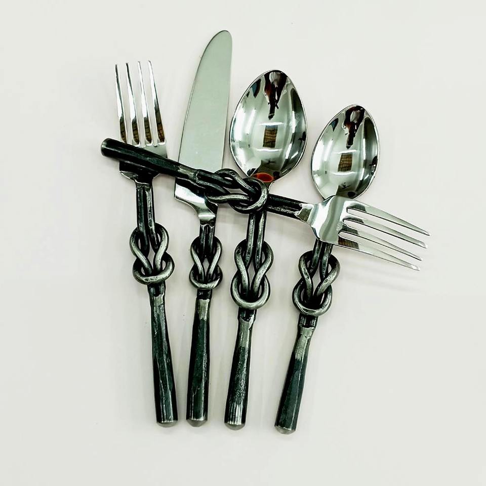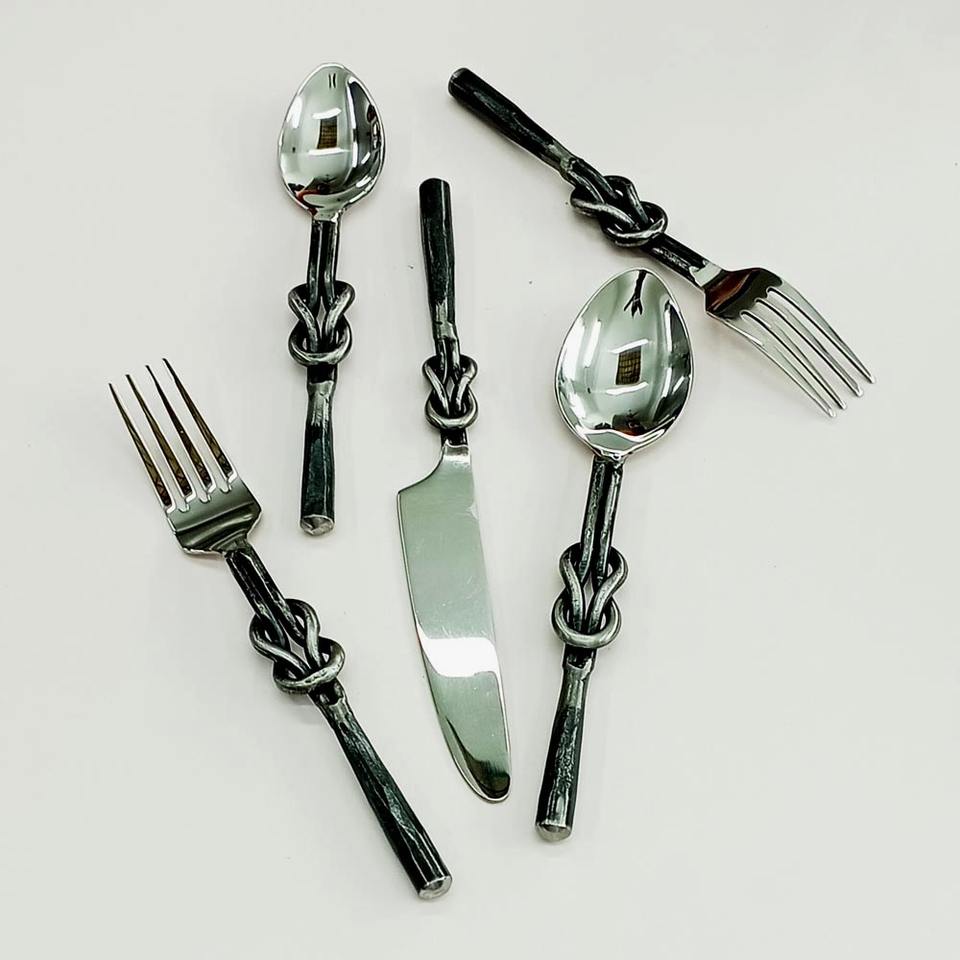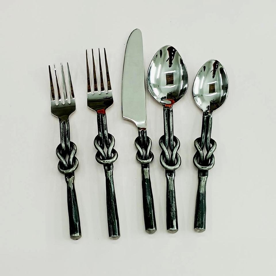 Ensemble de couverts portugais de luxe personnalisés avec abat-jour noir plaqué argent Ensemble de couverts d'ustensile à poignée à double nœud
