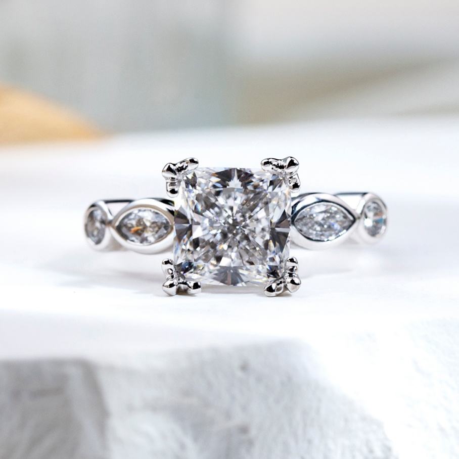 Bague de fiançailles solitaire personnalisée MSR-1837 PT950 2,5 CT F VVS1 Coupe coussin Diamant de laboratoire cultivé
