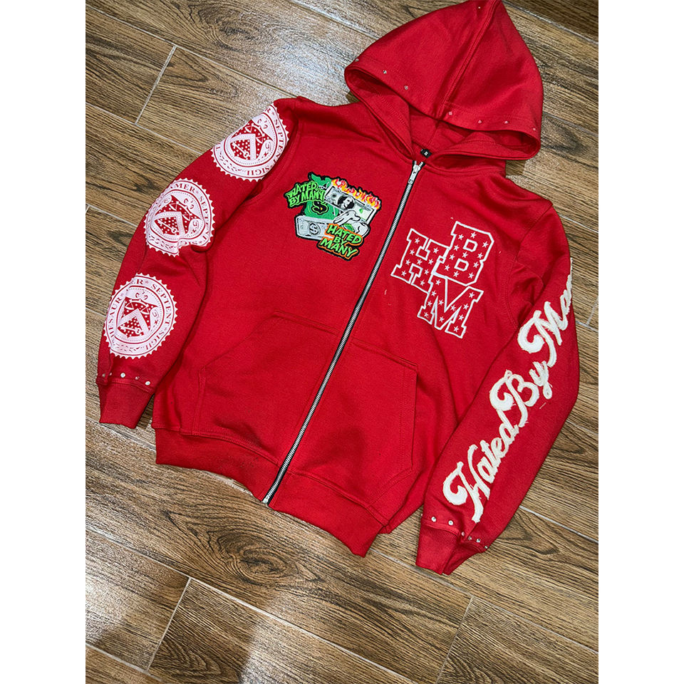 Fait sur mesure de haute qualité vierge hommes strass fermeture éclair sweats à capuche nouvelle mode personnalisée couleur unie vêtements décontractés sweat à capuche zippé