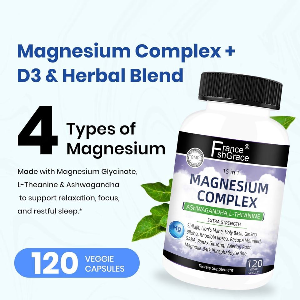 Capsules de complexe de magnésium personnalisées pour soutenir une routine nocturne saine, complément de magnésium complexe, 120 capsules