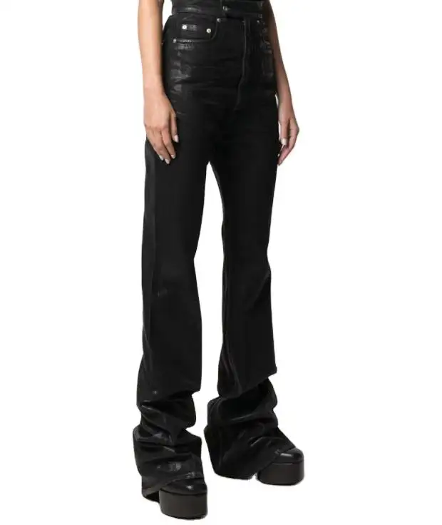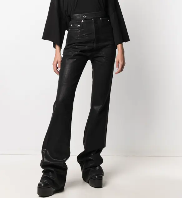 Pantalon en denim enduit de cire pour femmes fabriqué sur mesure High Street Wax Slim Jeans Femme Black Flared Denim Jeans