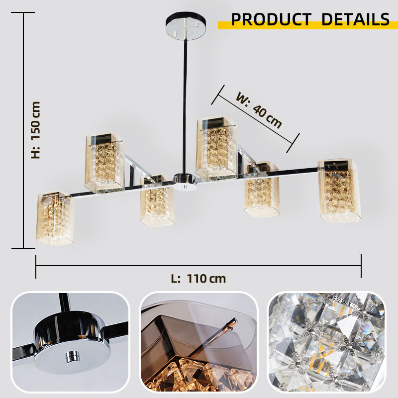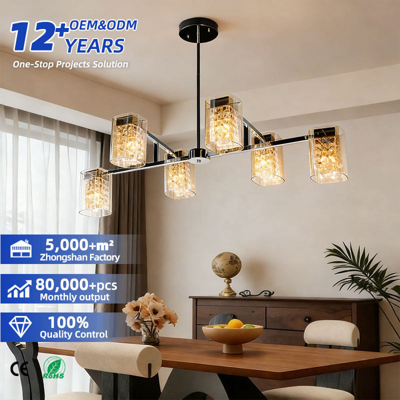 Lustre suspendu LED moderne et décoratif de luxe, design personnalisé par le fabricant, en fer et verre, haute luminosité, garantie de 3 ans