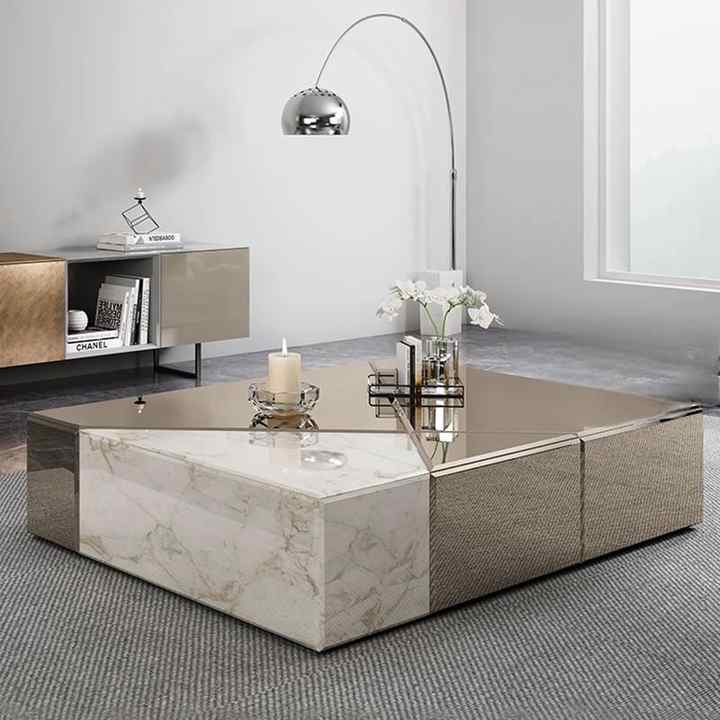 Plinthe basse en marbre personnalisé Table basse de luxe pour salon en pierre de marbre naturelle personnalisée de luxe en acier inoxydable