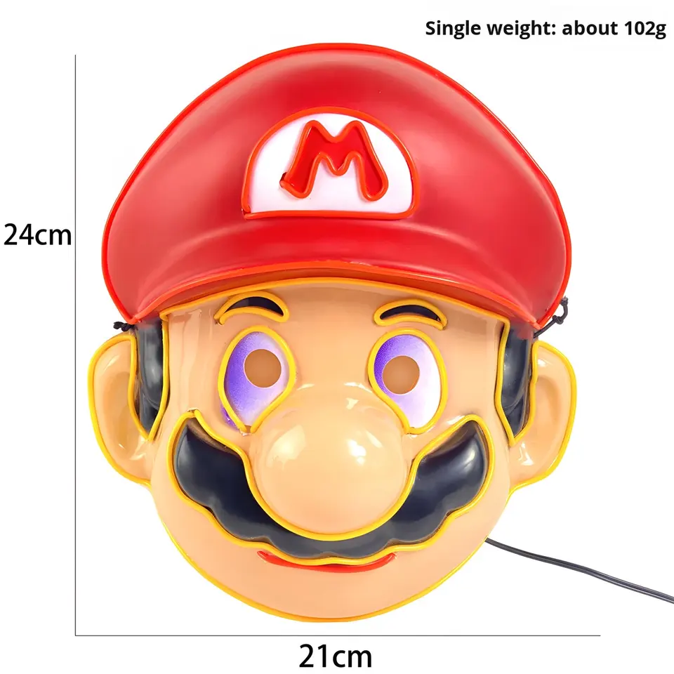 Mario personnalisé pour Super Mario LED lumière froide masque lumineux dessin animé Animation mascarade fête Performance EL