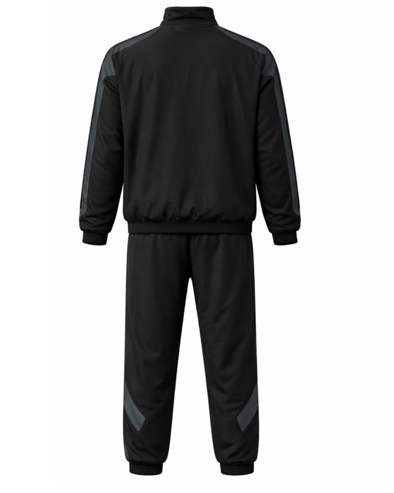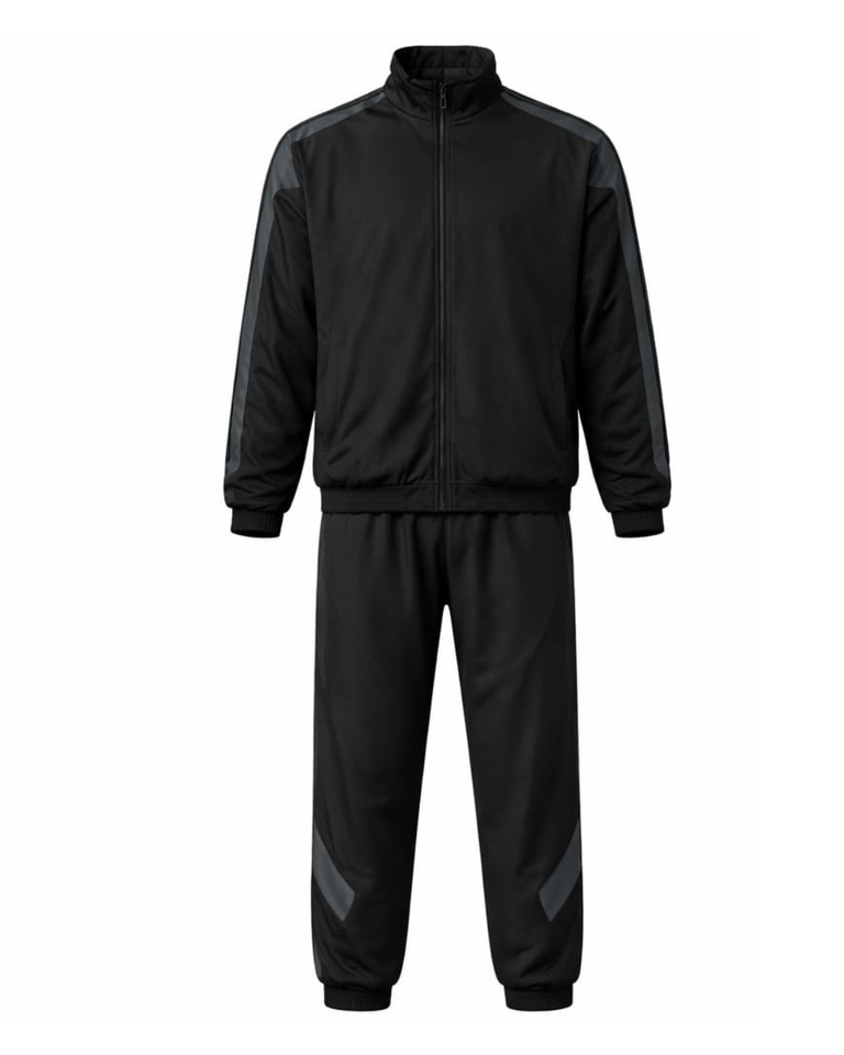 Ensemble de survêtement personnalisé pour homme, noir, avec empiècements contrastés, veste zippée intégrale et pantalon de jogging, fabricant sur mesure, vêtements de sport, tenue d'entraînement