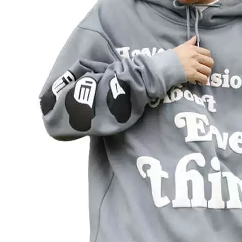 Sweat à capuche avec logo en mousse 3D personnalisé pour hommes, sweat à capuche en coton sans cordon, imprimé moelleux à poignée latérale