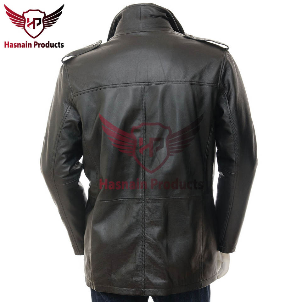 Veste en cuir noir personnalisé pour hommes Manteau en cuir véritable fabriqué à la main de qualité supérieure pour les hommes élégants en hiver