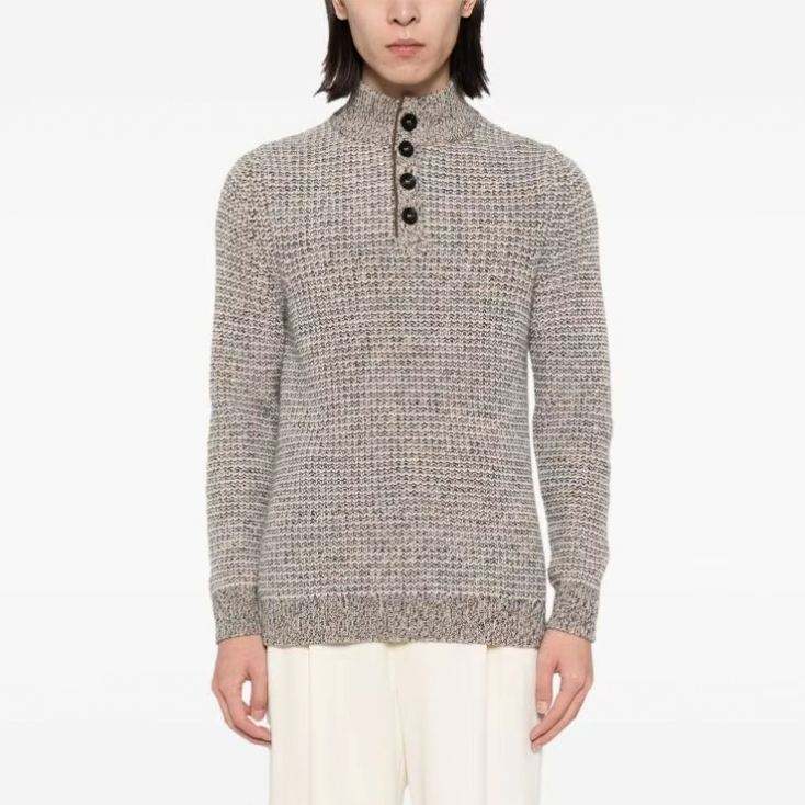 Pull tricoté personnalisé pour hommes en mélange de laine d'hiver Pull à col semi-haut Pull épais à 1/4 boutons Pull pour hommes