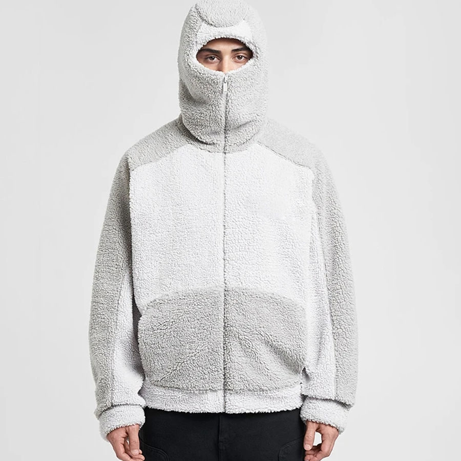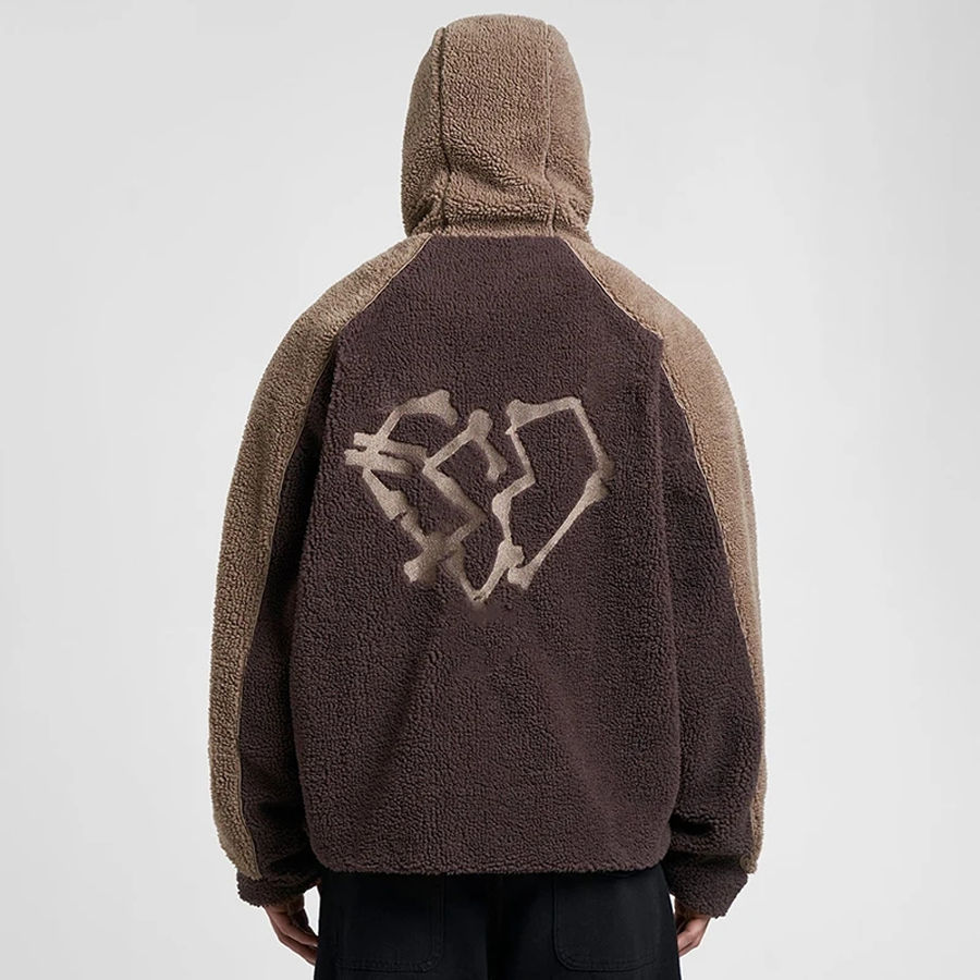 Sweat à capuche en polaire Sherpa surdimensionné personnalisé pour hommes avec logo brodé fermeture à glissière basse quantité minimale de commande sweats à capuche décontractés d'hiver pour hommes