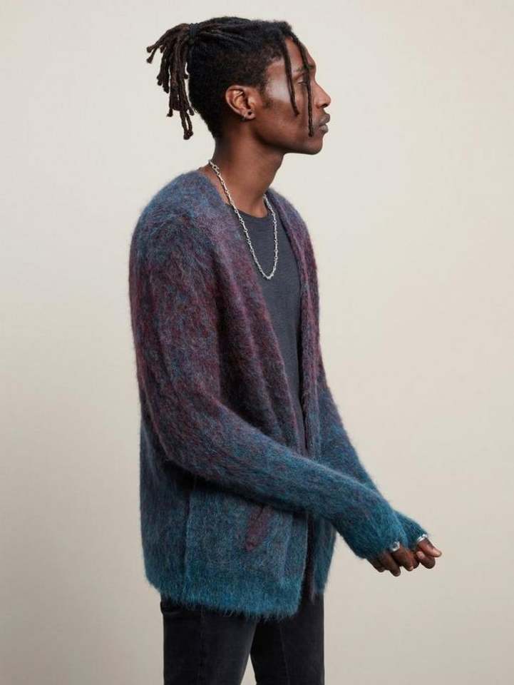 Personnalisé Hommes Col Rond Cardigan À Manches Longues Mohair Changement Graduel Couleur Jacquard Cardigan