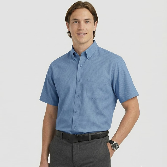 Chemise habillée en bambou pour homme, coupe classique, manches courtes, écologique, style formel, personnalisable