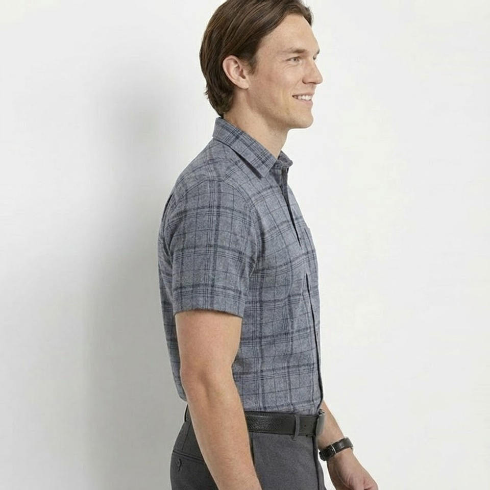Chemise habillée pour homme personnalisée, rayée, en fil de bambou teint, coupe classique, manches courtes, style formel écologique
