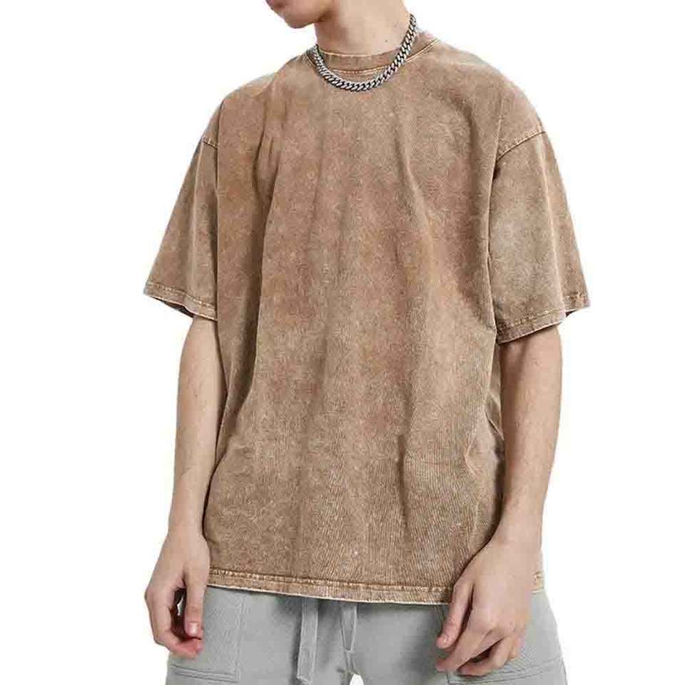 T-shirt Homme Personnalisé Vintage Oversize en Coton Lourd 100% Écologique Respirant Séchage Rapide Coupe Classique Lavé