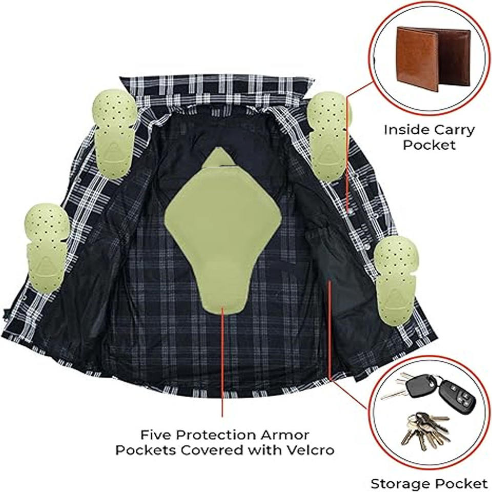 Customized Mens Biker Fire Retardant Motorbike Shirt Made With Motorbike Protective Flannel Shirt in All Color and Sizes
