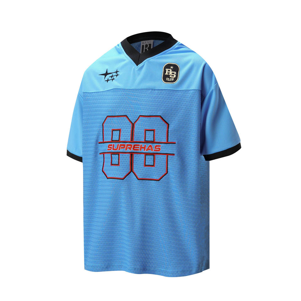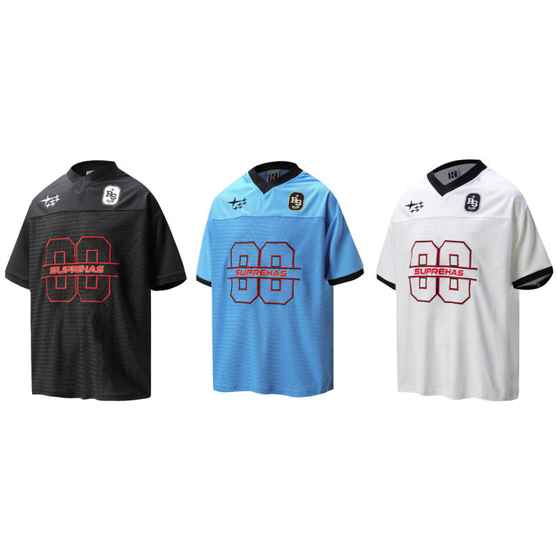 T-shirt à manches courtes en maille personnalisé, été, jersey brodé, sport, extérieur, respirant, col en V, surdimensionné, couple, 280 grammes