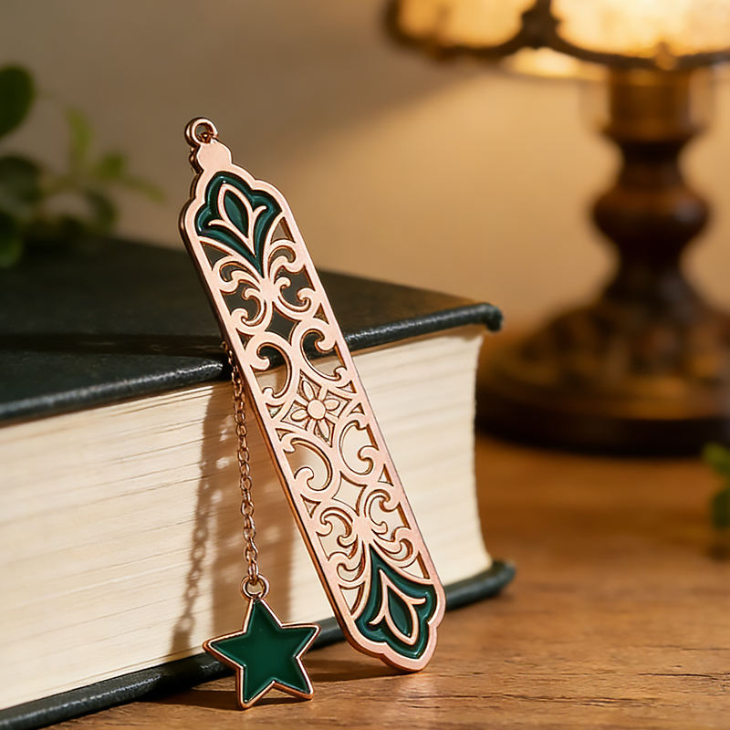 Marque-page en métal personnalisé, artisanat en métal, émail rétro, marque-page pour les amoureux des livres, pendentif étoile, motifs floraux, marque-page en métal personnalisé avec chaîne
