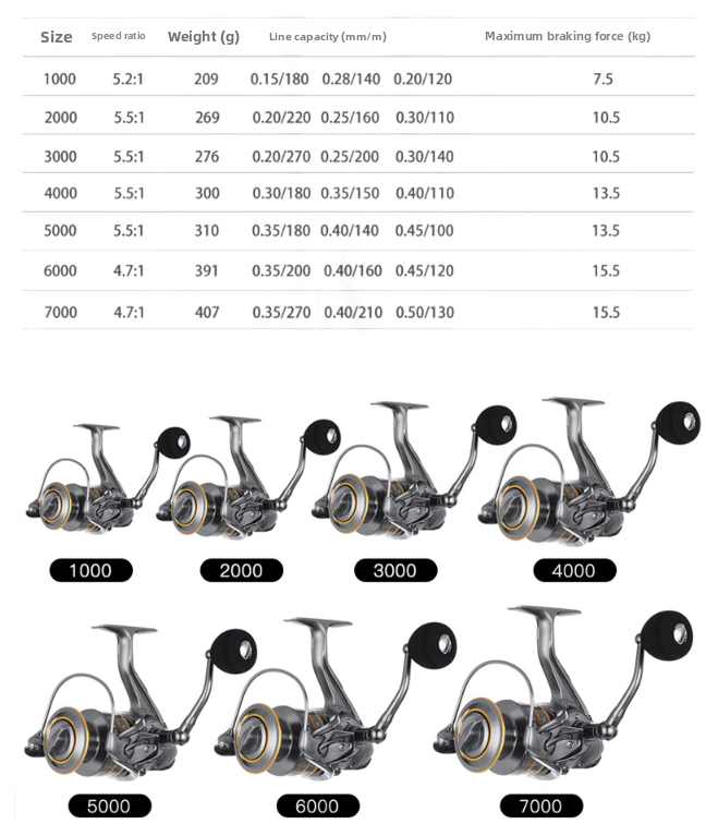 Moulinet de Pêche Métallique Personnalisé, 6+1 Roulements, Modèles 1000-7000, Moulinet Spinning pour Eau Douce et Eau de Mer