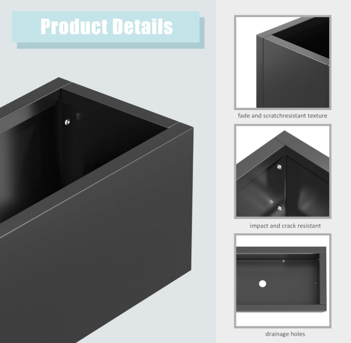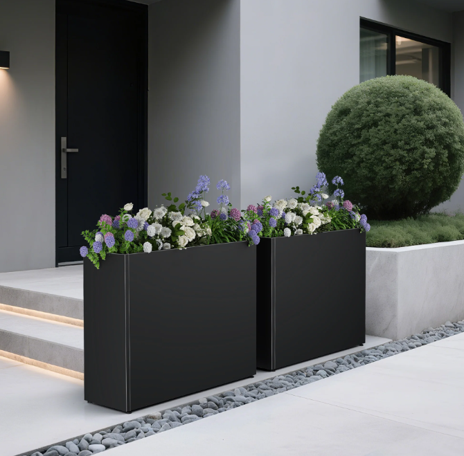 Jardinière rectangulaire en métal personnalisée, pots rectangulaires en acier, jardinière moderne, logo personnalisé, jardinière rectangulaire en métal