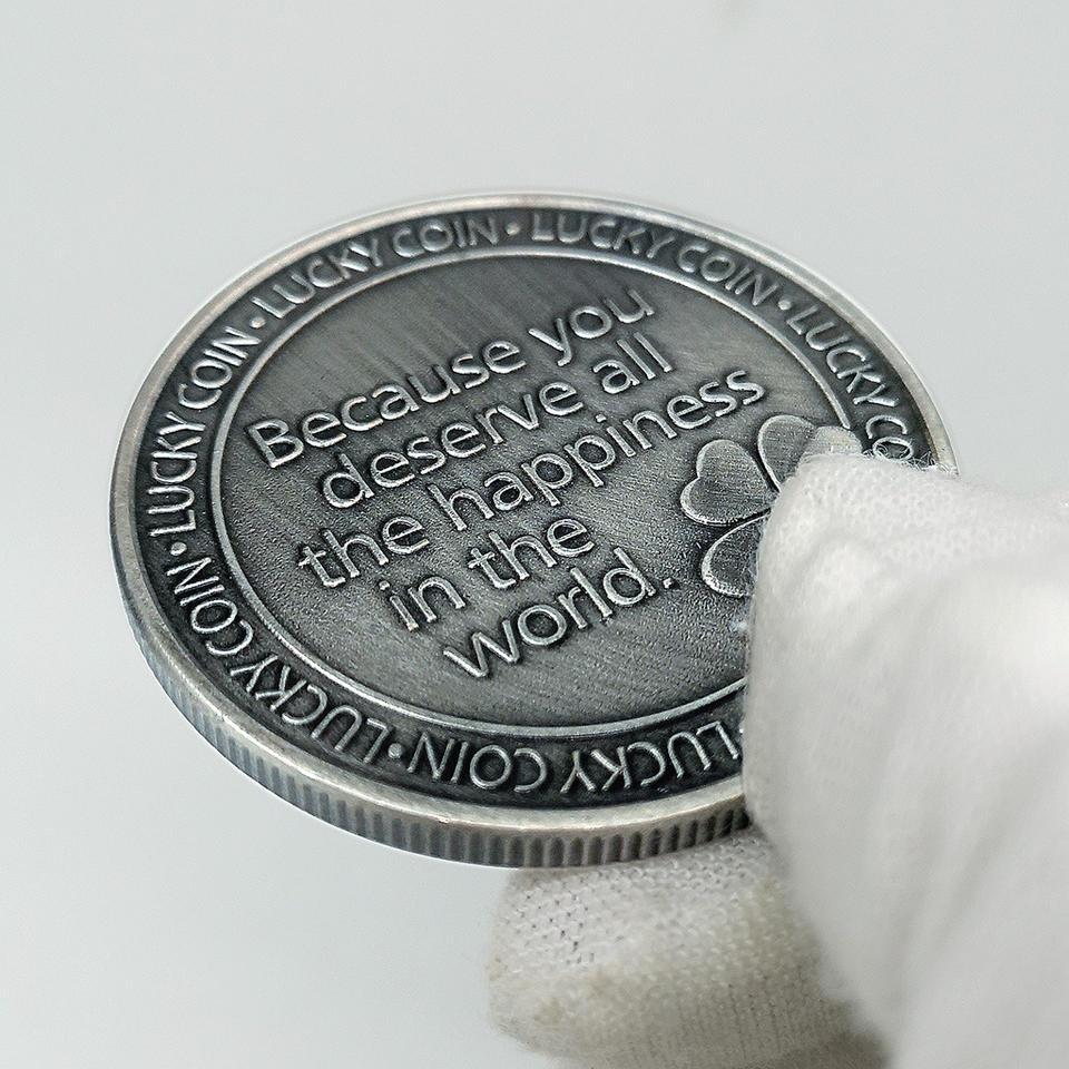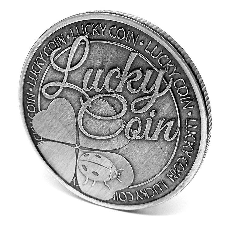 Pièces souvenirs en métal personnalisées Trèfle porte-bonheur pièces commémoratives Coccinelle Pièces mignonnes Médailles en argent antiques personnalisées en gros