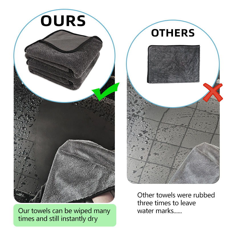 Chiffons de nettoyage en microfibre personnalisés serviettes propres lavables serviette de séchage de voiture en microfibre boucle torsadée