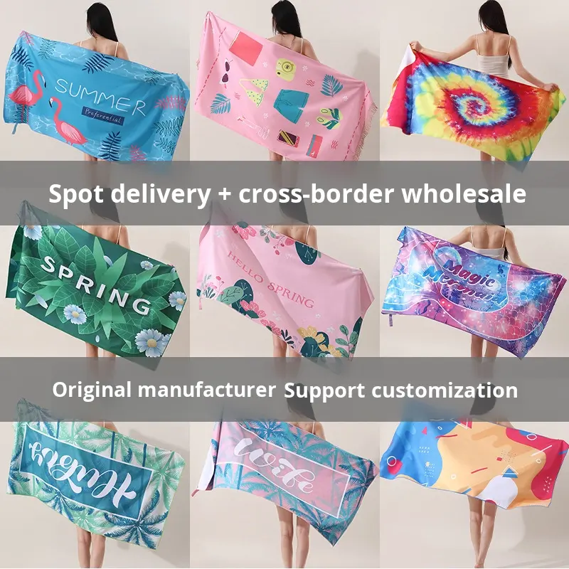 Serviette de plage en microfibre double face personnalisée imprimée de protection solaire d'été absorbante à séchage rapide pour la natation dans le bain