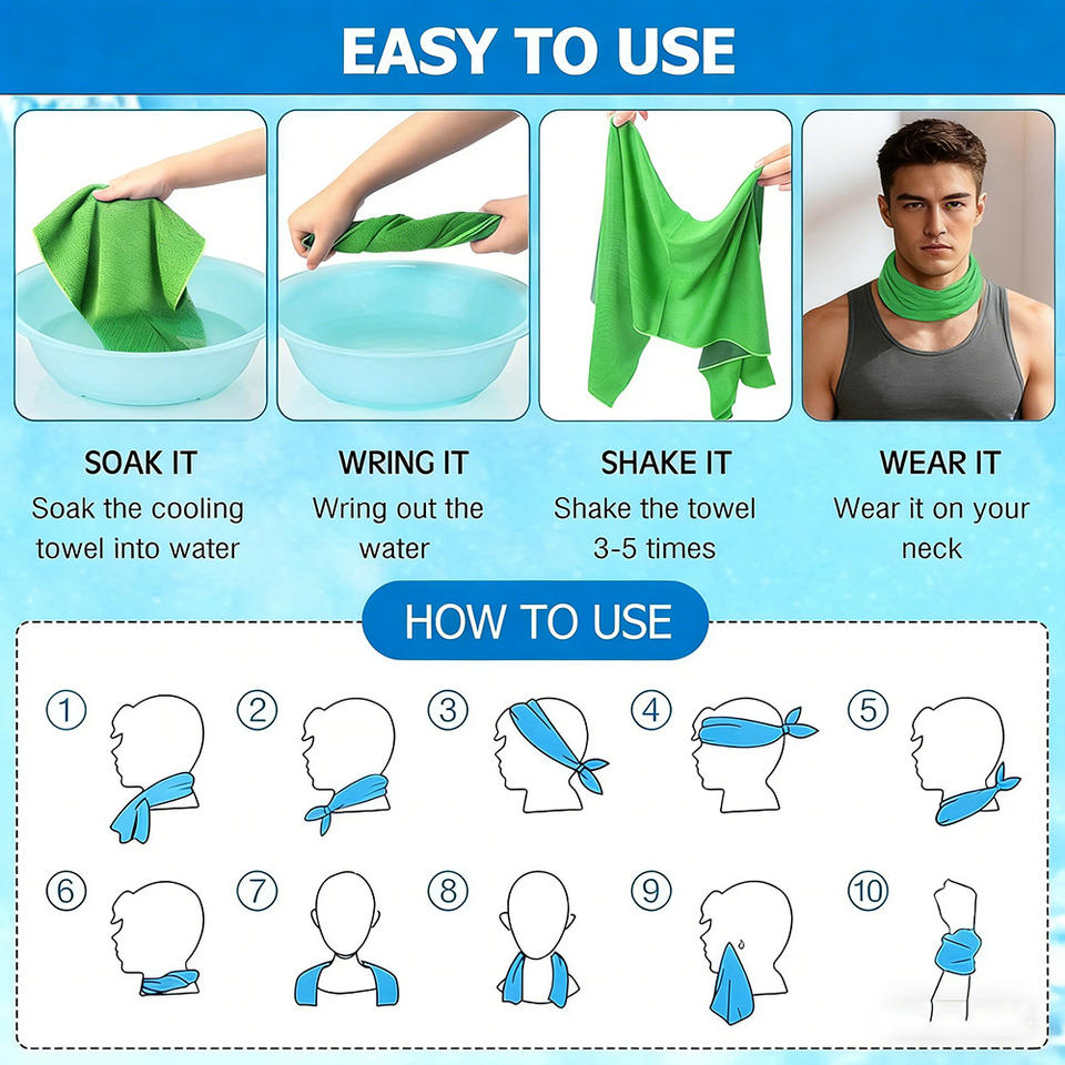 Serviette en microfibre personnalisée absorbant la transpiration et rafraîchissante, idéale pour les sports de plein air en été