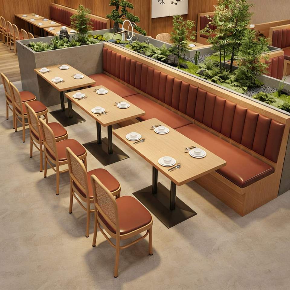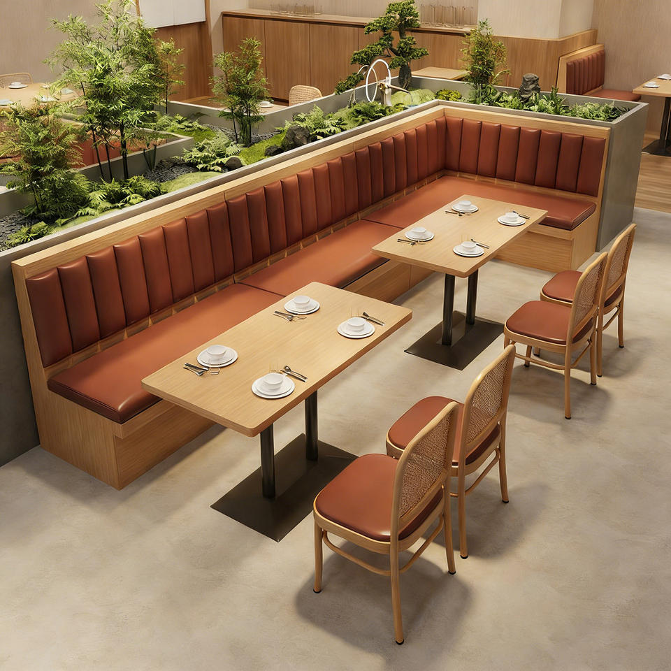 Ensemble table et chaises en bois massif demi-cercle moderne et personnalisé pour usage commercial, restaurants occidentaux, salons de thé, hôtels