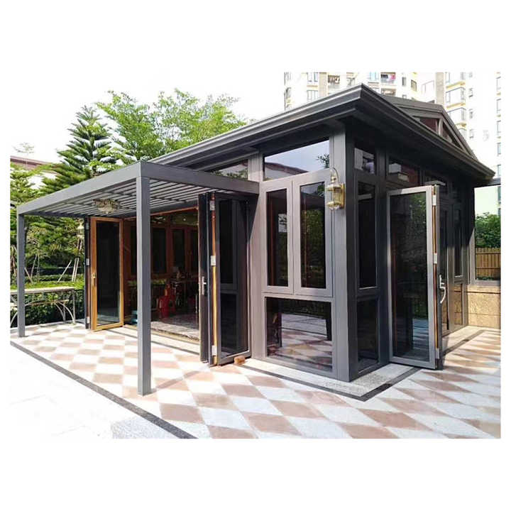Design moderne personnalisé Maison extérieure en aluminium autoportante en verre Véranda de jardin d'hiver Véranda avec toit trempé