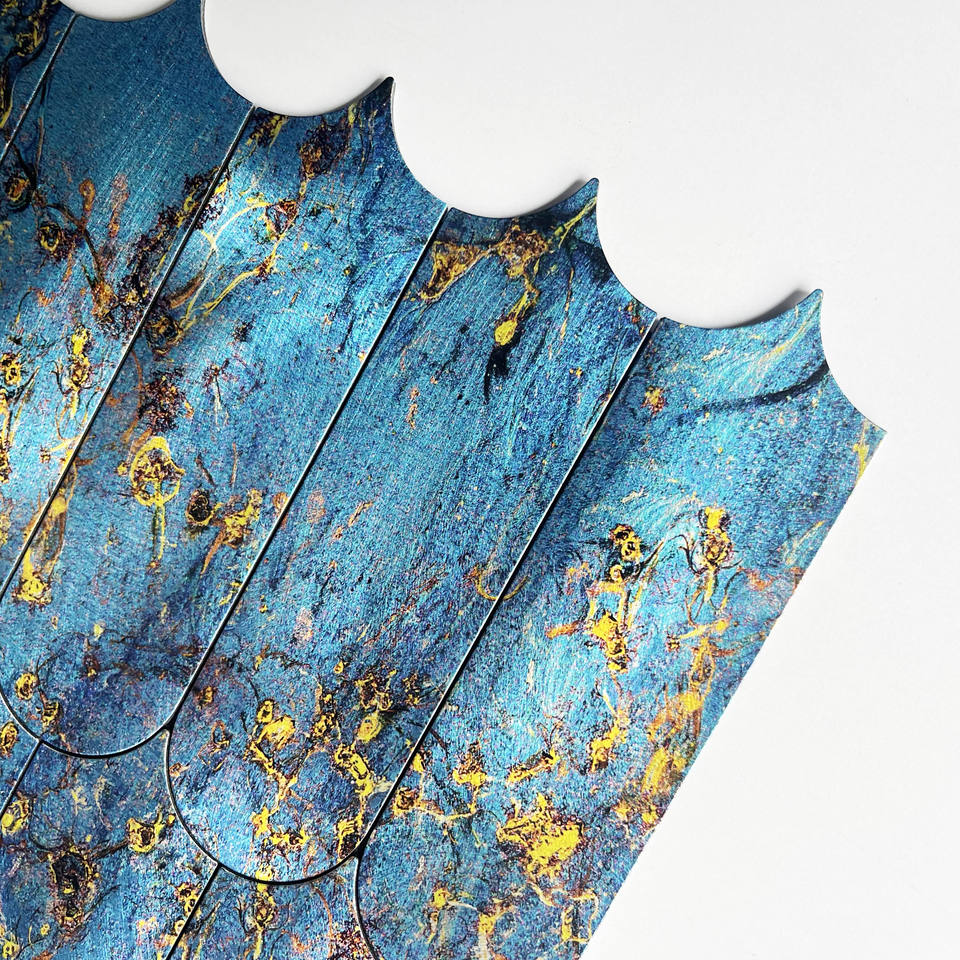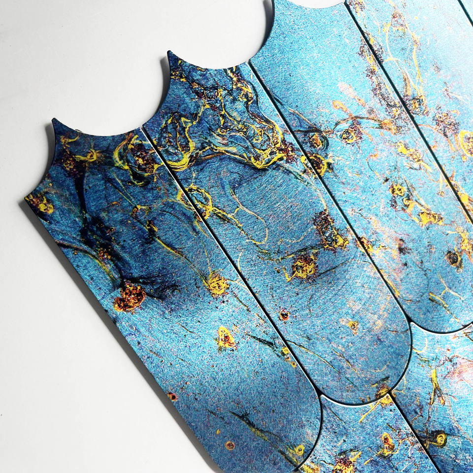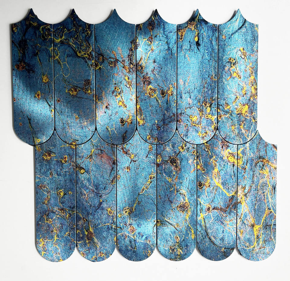 Autocollant mural hexagonal moderne personnalisé de 4 mm d'épaisseur, couleur bleu vif, pour crédence de salle de bain et revêtement mural intérieur