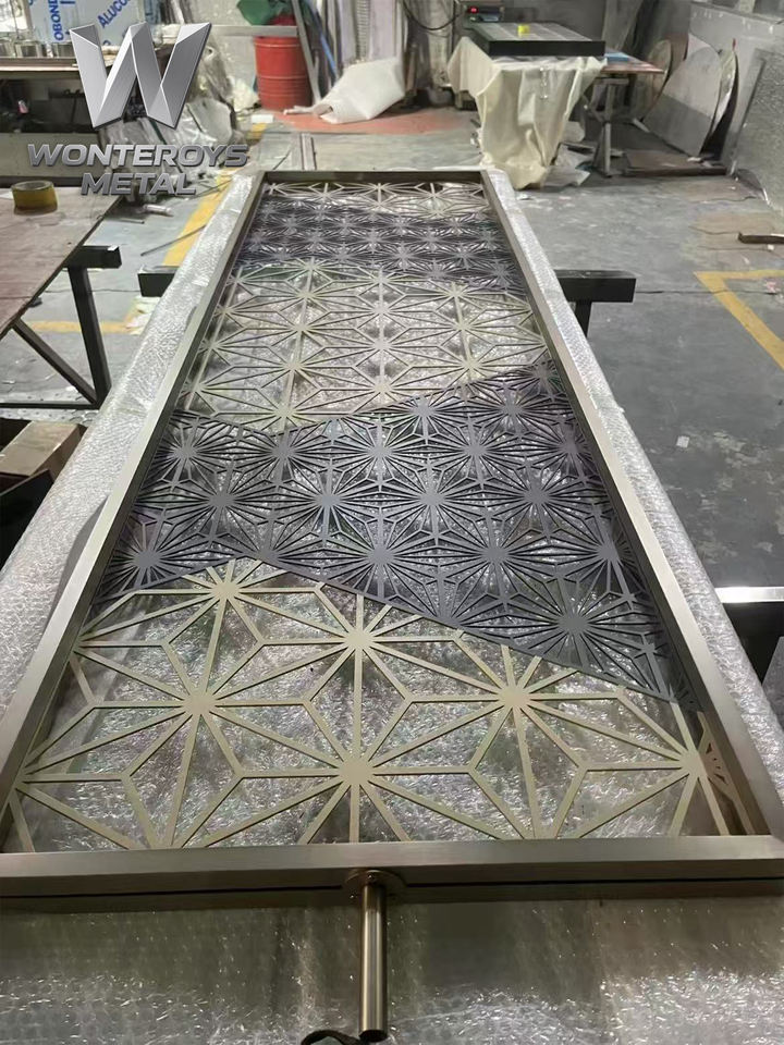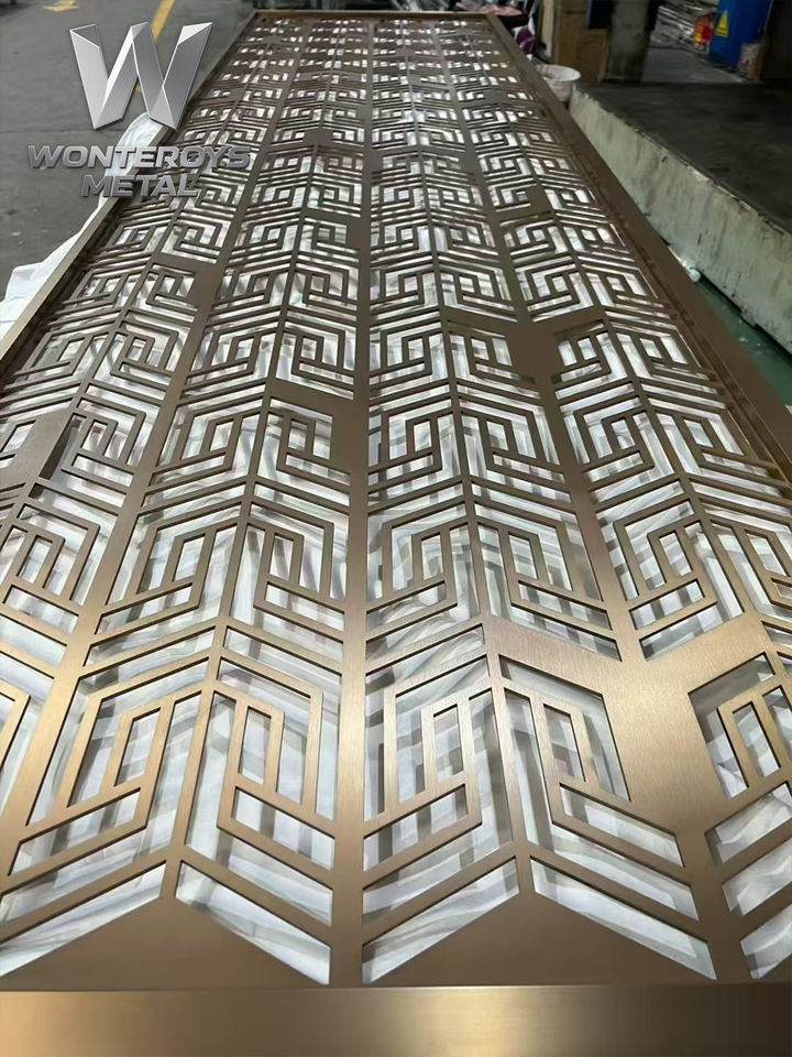 Cloison de séparation murale au design moderne personnalisé, en acier inoxydable découpé au laser, finition PVD, pour bureau, salon, galerie, club, salon de beauté