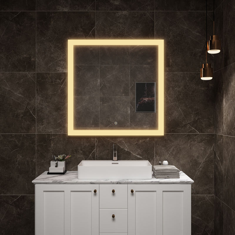 Miroir de salon moderne personnalisé à intensité variable CCT avec LED et interrupteur tactile, conception graphique activée pour les hôtels, les appartements et les villas