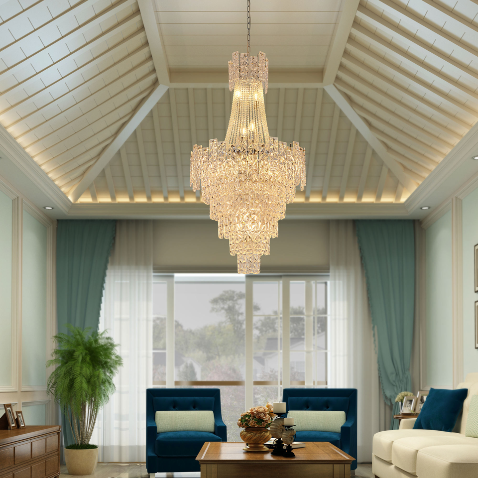 Lustre en cristal LED moderne personnalisé en or K9 pour la maison Villa hôtel de luxe interrupteur d'alimentation télécommande éclairage brillant