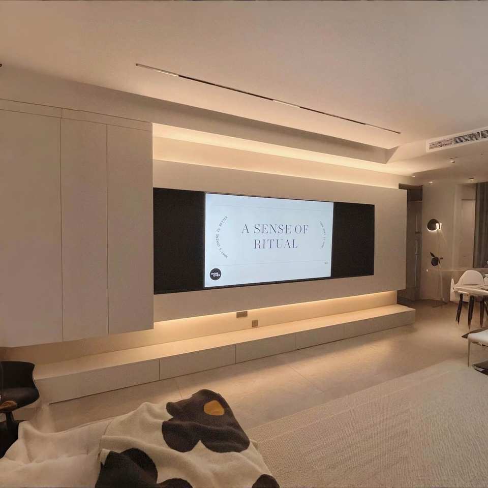 Meuble TV personnalisé de style moderne pour le salon grille en bois placage de roche avec TV intégrée meubles de maison avec fonction de stockage
