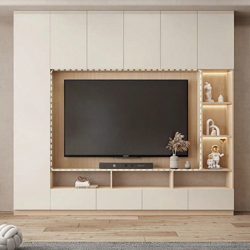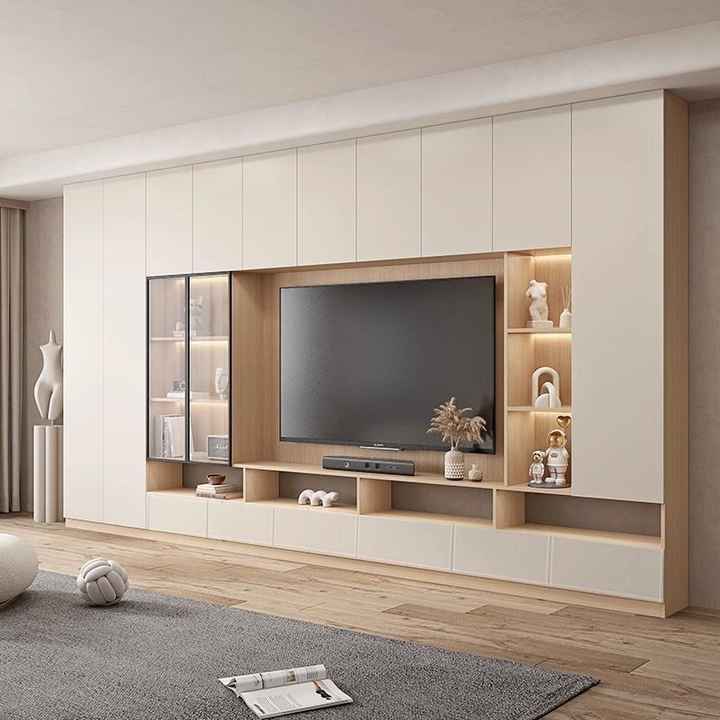 Meubles TV suspendus modernes personnalisés avec éclairage pour salons et chambres à coucher, supports TV en bois pour usage domestique