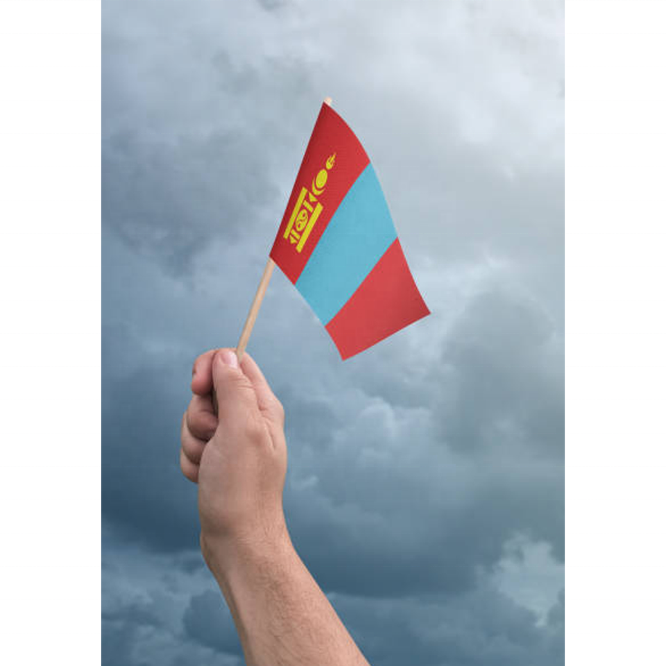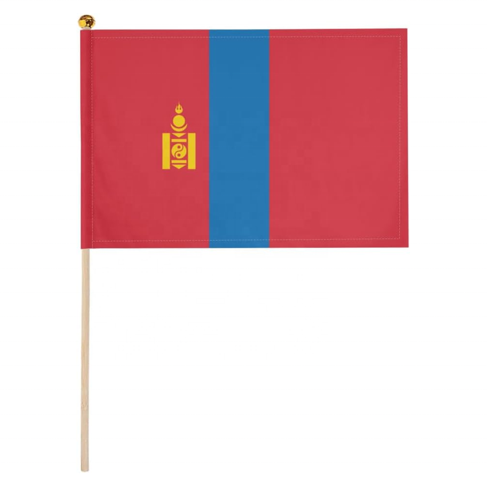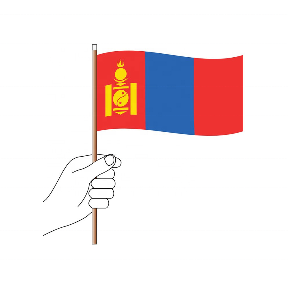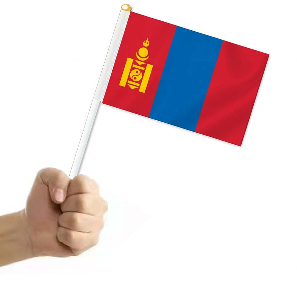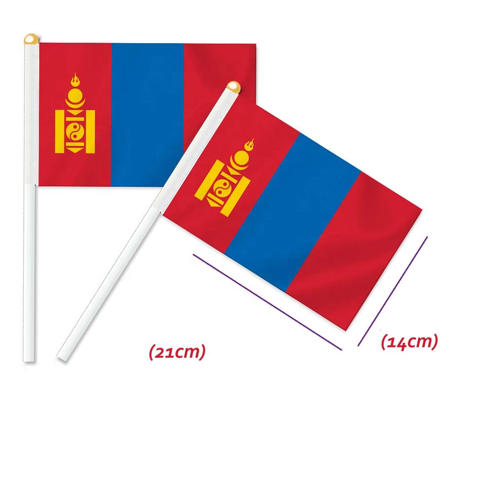 Drapeau à main personnalisé de la Mongolie, double face, durable, polyester de haute qualité, 14x21cm, impression personnalisée, drapeau à main à agiter