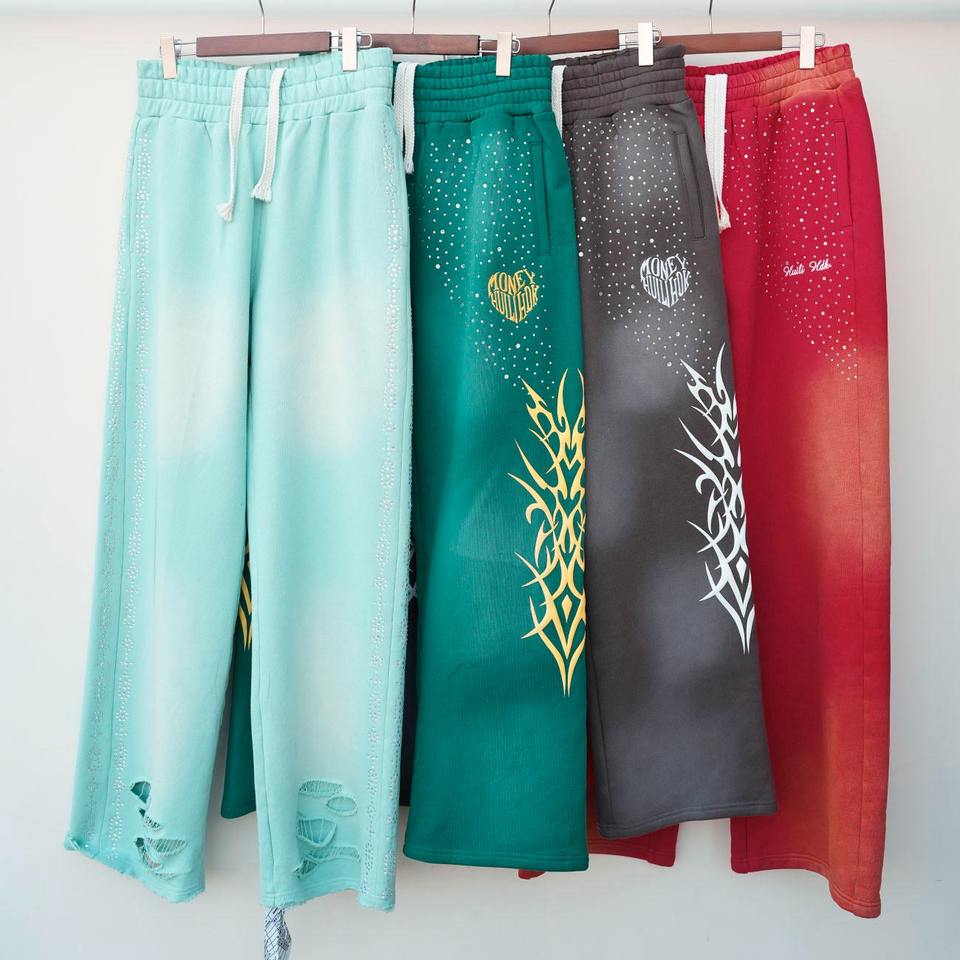 Pantalon de survêtement en coton épais délavé au soleil avec impression de singe en 3D avec logo brodé et jambe large pantalon de survêtement en strass personnalisé