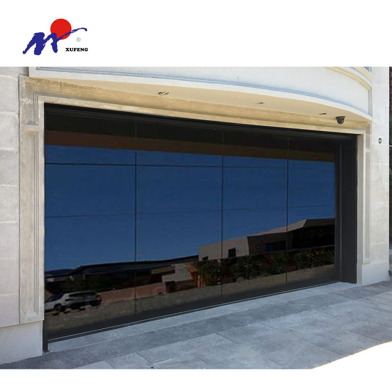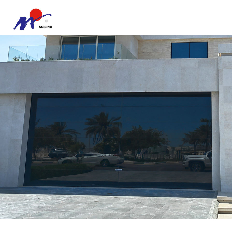 Porte de garage sectionnelle motorisée personnalisée en aluminium avec verre dépoli