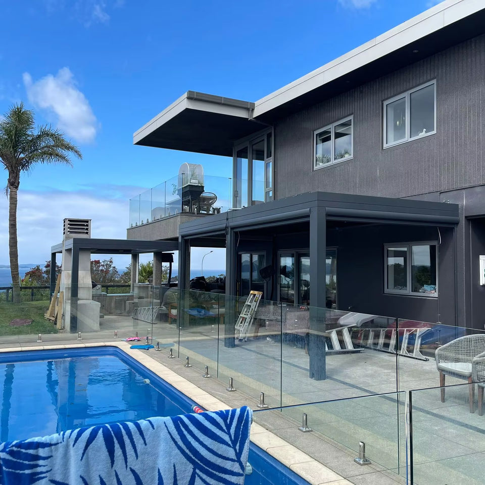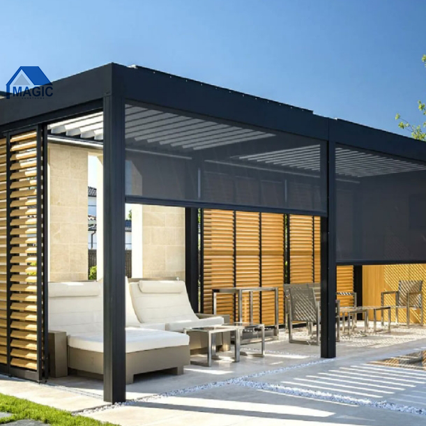 Couvercle de pergola motorisé personnalisé en aluminium enduit de poudre Louvre balcon véranda véranda design unique de pergola