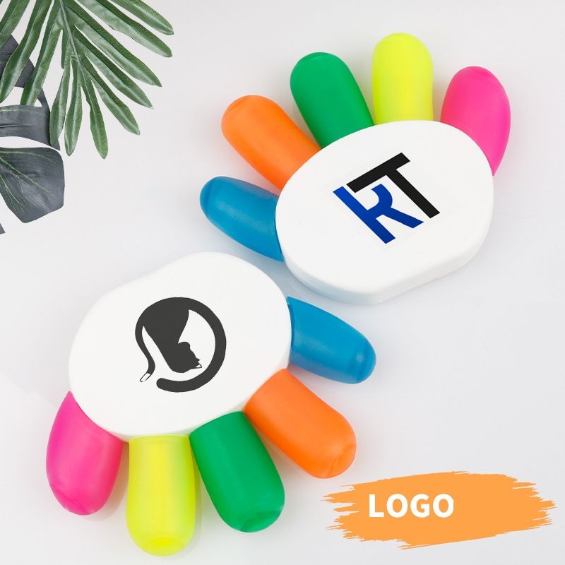 Ensemble promotionnel de stylos de surligneur en forme de doigt de main multicolore personnalisé avec emballage en vrac inclus de logo