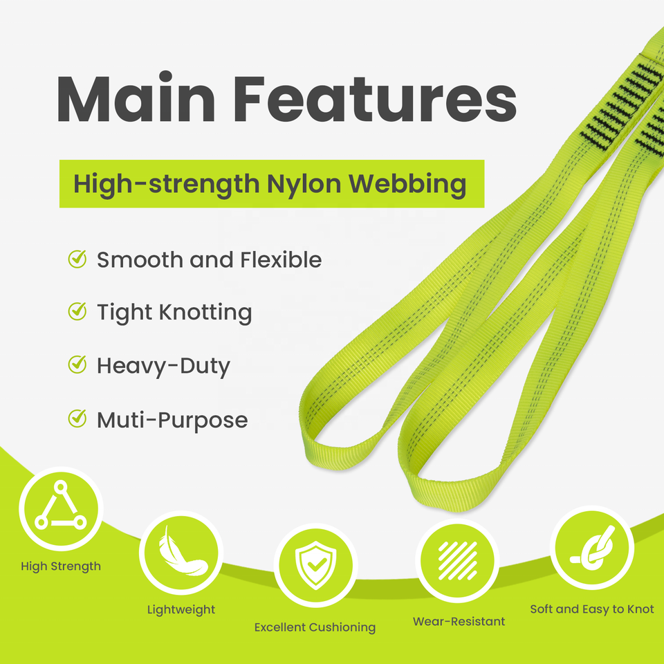 Sangle de traction multifonction personnalisée avec ancrages en sangle cousue et boucles doubles pour l'arboriculture, l'escalade, le sauvetage et le travail en hauteur