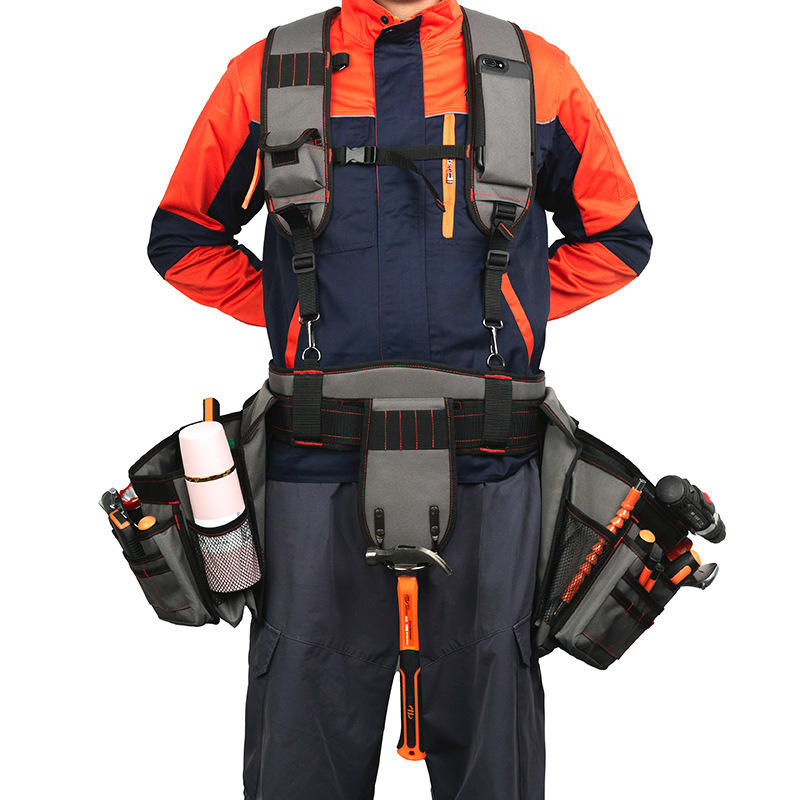 Sac de ceinture multifonctionnel robuste en tissu Oxford personnalisé pour électriciens et charpentiers, noir et gris YB021